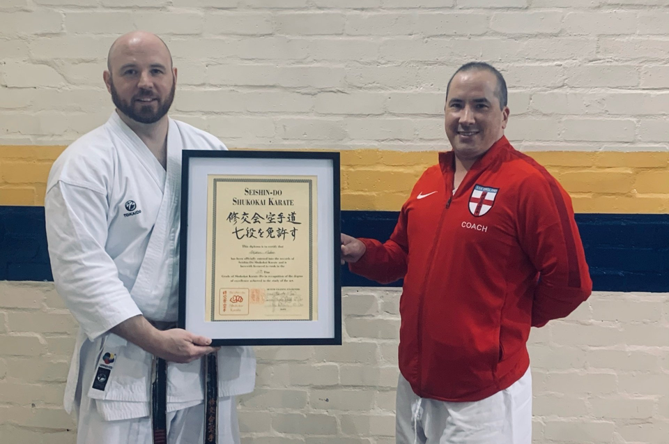 At SSK, from 5th dan upwards, dan grades are awarded without a formal grading but with ratification from well respected Shukokai practitioners outside of the SSK. Grades of this level are only considered upon showing continuous learning, understanding and development of both their karate and teaching methods. Over the past years Ste has become a member of the Koryu-uchinadi research group, has achieved a blue belt in BJJ, become a qualified Pressure Point Instructor and trained with many respected karateka including Patrick McCarthy, Vince Morris, Russell Stutely, Iain Abernethy and Peter Consterdine to name a few.
